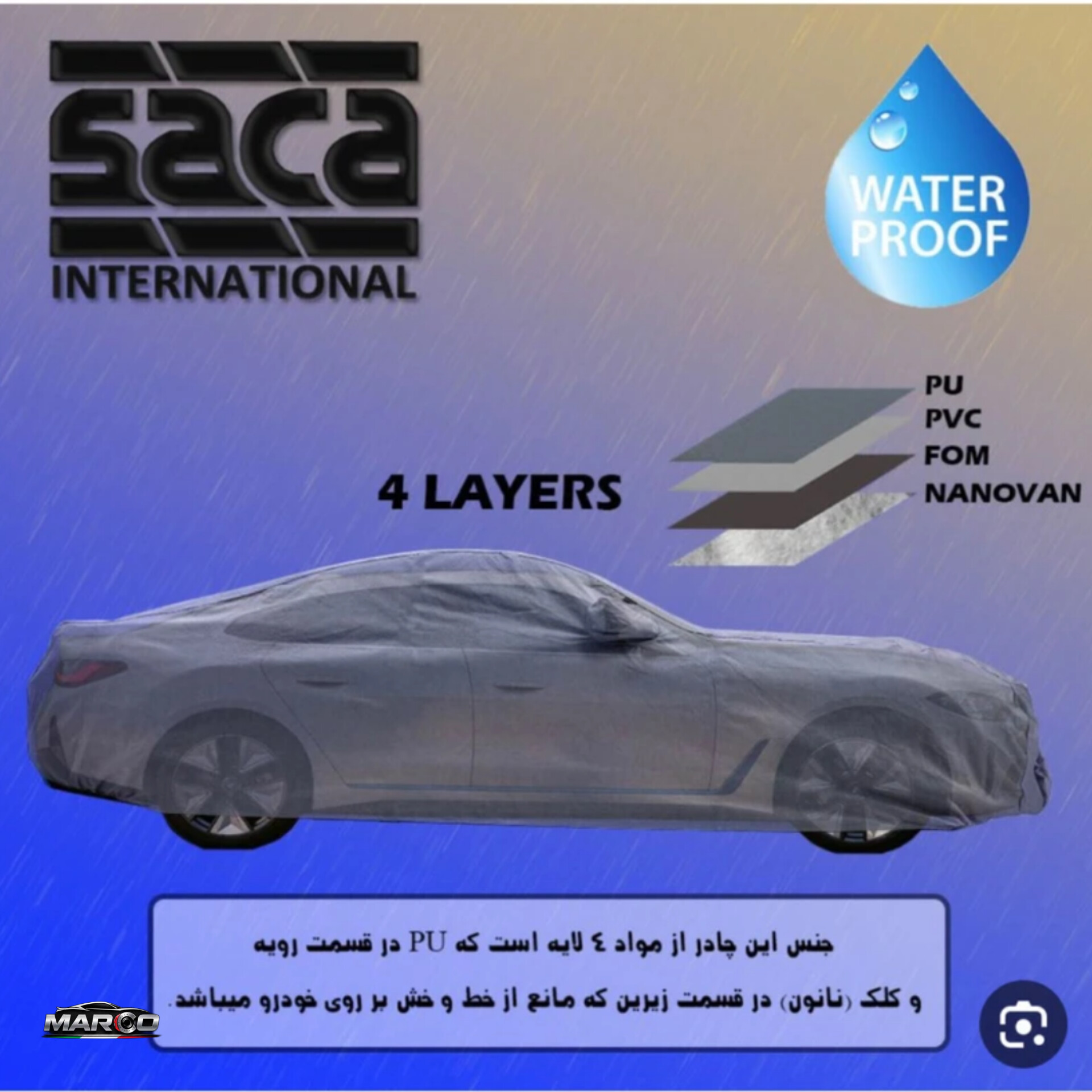 لایه داخلی: نرم و کرکی (Fleece‑Lined) که باعث جلوگیری از خط و خش بدنه خودرو میشود